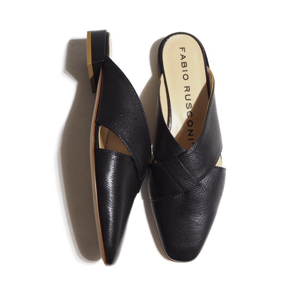 - R0971R13 ▼FABIO RUSCONI ファビオルスコーニ▼ イタリア製 クロスフラット シューズ ブラック 36/23cm 黒 サンダル 黒 春夏