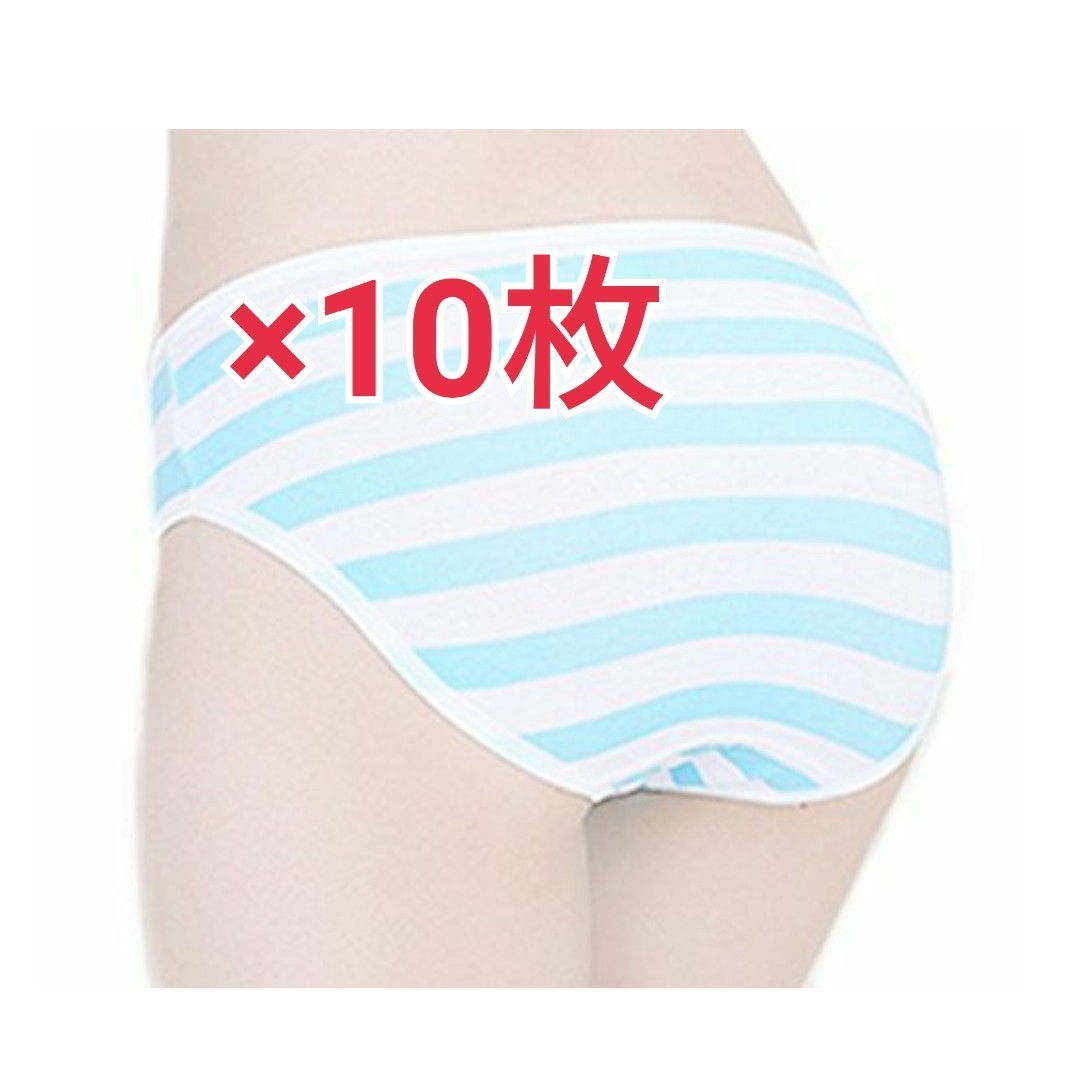 - 10枚 縞パン しまぱん ボーダーパンツ しましま ショーツ ブルー