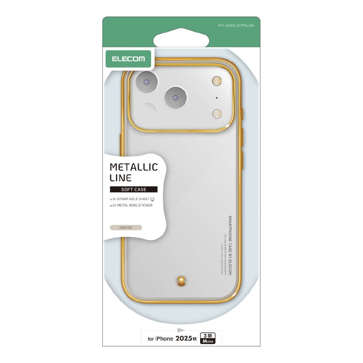 - iPhone17 Pro用ソフトケース 側面のエッジ部分やカメラ周り部分にメタリックラインを施した上品な輝きを放つ高級感: PM-A25CUCTMLGB