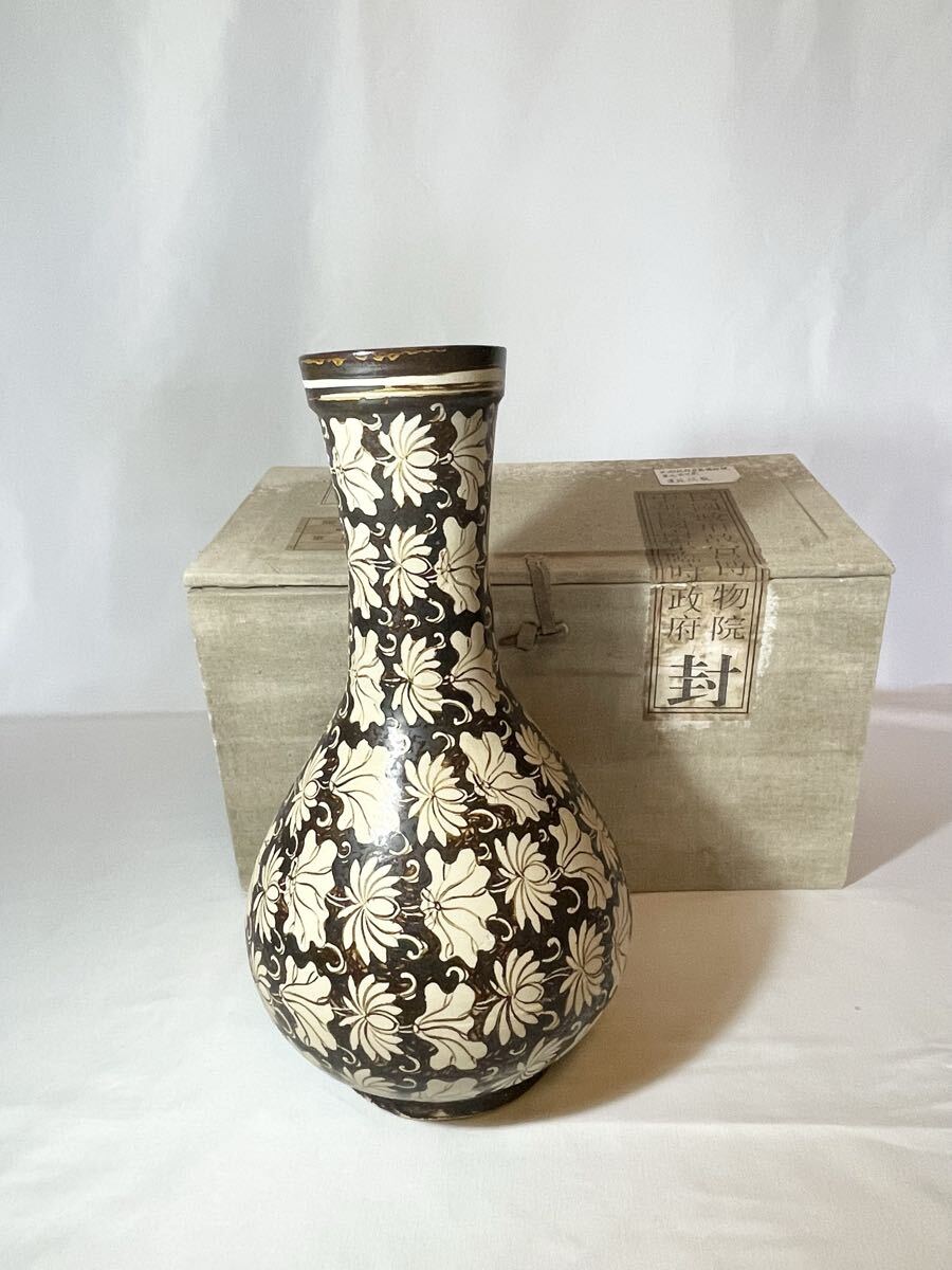 > 【故宮】宋代吉州窯 蓮花紋瓶 約H31×W17cm 民国政府故宮博物院 中華民国南京臨時政府封 押運部隊七十二軍 中国美術 古美術 骨董花瓶時代物