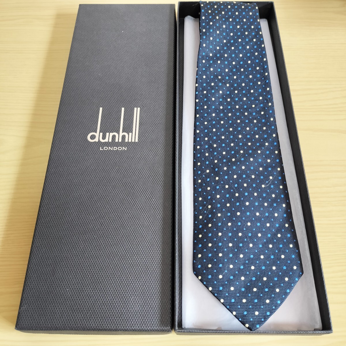 - ダンヒル(Dunhill)紺色青色シルバー点々模様ネクタイ
