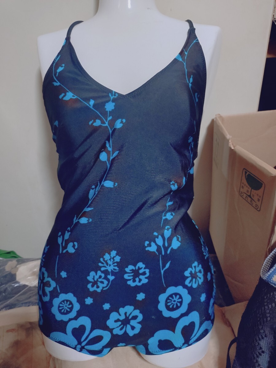 - M4545◆セレブなブラック&ブルー系花柄ワンピース水着◆11L