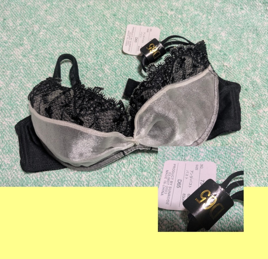 - 未使用 ブラジャー 黒 ホワイト シースルー D65