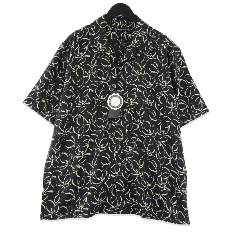 - 未使用 Upscape Audience アップスケープオーディエンス 半袖シャツ AUD6608 捺染 モノトーンフラワー ブラック 黒 L タグ付き 18000986