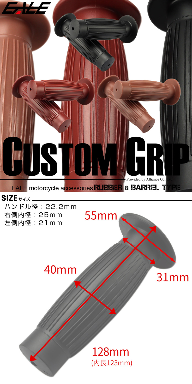 - バイク 樽型 グリップ ハンドル ラバー 生ゴム風 22.2mm用 非貫通 ブラック 左右セット カスタム ビンテージ アメリカン S-583-BK