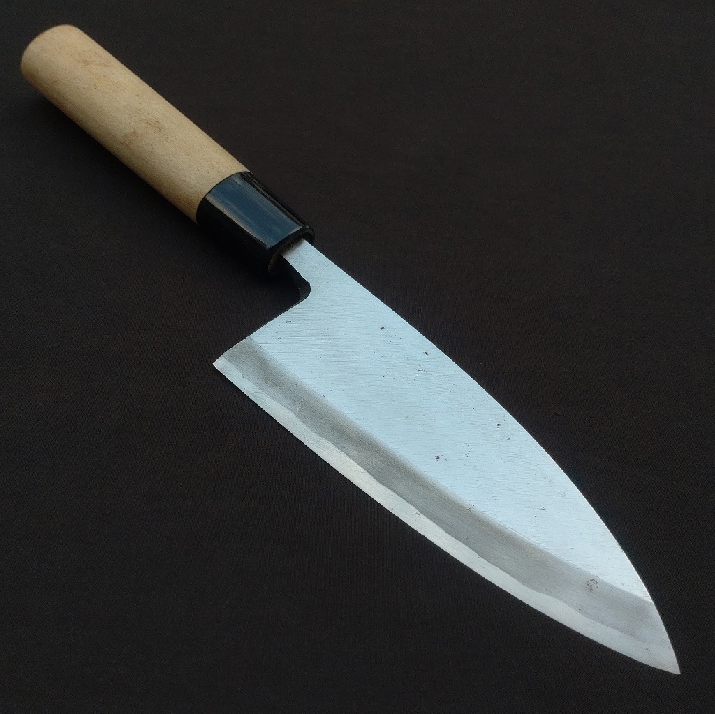 - 出刃包丁 和包丁 彫り無し 裏スキ 刃長約135㎜ 峰厚約7㎜ 重量約180g 片刃 庖丁 刃物 日本製 Japanese Kitchen knife Deba Hocho 【6338】