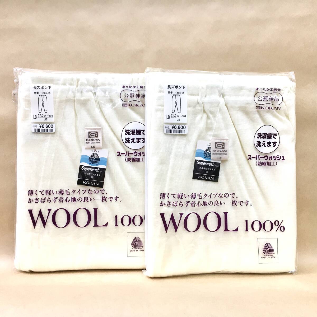 - 【新品13200】 LL 長ズボン下 ハイゲージ 毛100% 日本製 LLサイズ 2枚 送料無料 公冠 紳士 純毛肌着 昭和レトロ ウールマーク 天竺ウール