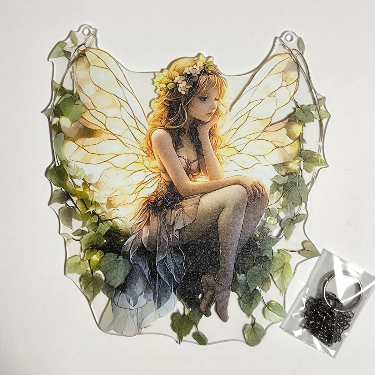 - 【妖精 フェアリー カラフル】アクリルプレート 飾り サンキャッチャー チェーン付き オブジェ お洒落 壁や窓辺の飾りに◎