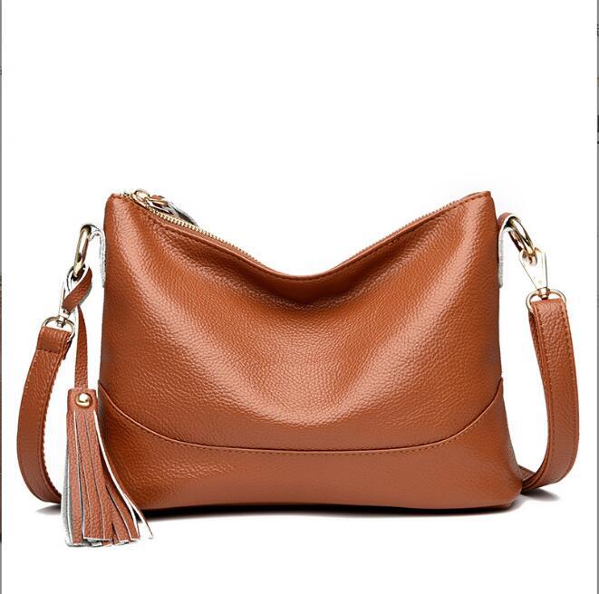 - 新入荷本革 牛革 イタリアンレザー ブラウン 2way ショルダーバッグ タッセル付き ハンドバッグ 斜めがけ お色選択可