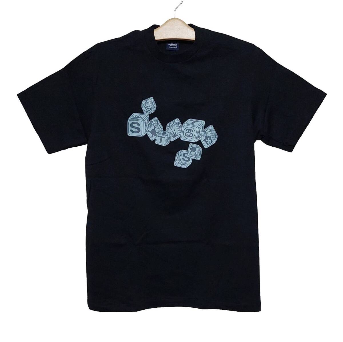 > 超激レア!新品タグ付き!STUSSY オールドステューシー/90s 紺タグ!サイコロ ダイスロゴTシャツ M ブラック/希少デッドストック入手困難!