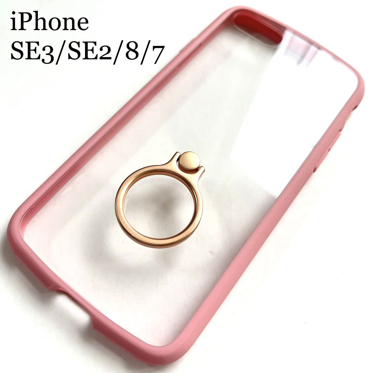 > iPhone SE3/SE2/8/7用ハードケース★リング付★全周衝撃吸収ピンク★ELECOM★クリアピンク