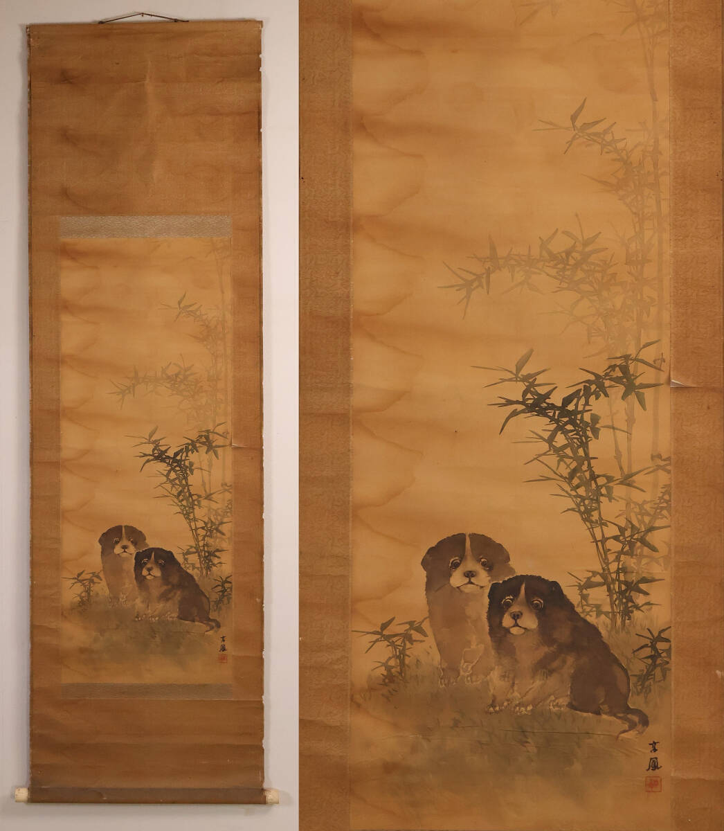 - 【模写】日本画 橋本高鳳 犬図 絹本 掛け軸 大正昭和期 MA857