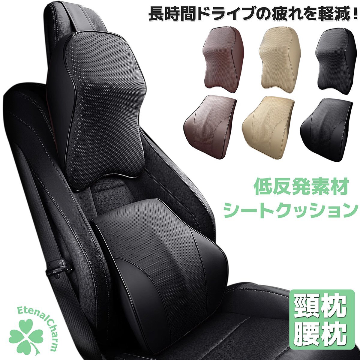 - 【送料無料】シートクッション ネックパッド 上下セット 首枕 腰枕 車 ヘッドピロー 頸枕 人間工学設計 低反発クッション 3色選択
