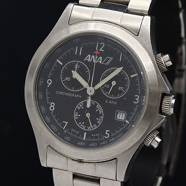 - ANA 全日空 NH-501 QZ クロノグラフ QZ ブラック文字盤 メンズ腕時計 2000000 NSK MST