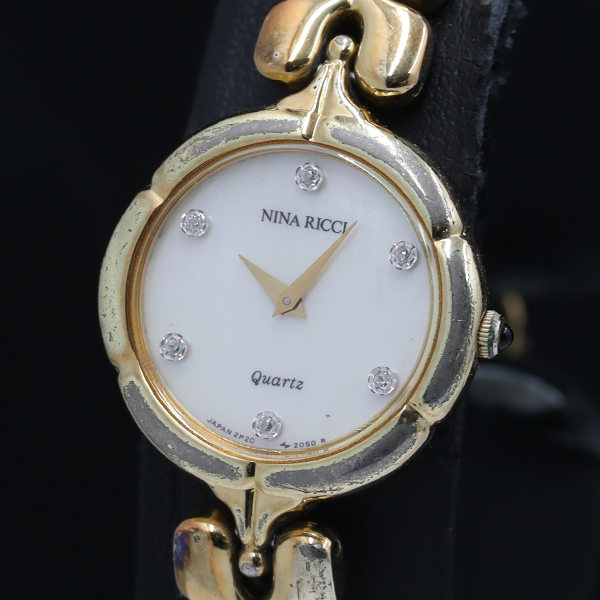 - ニナリッチ 2P20-0500 石付 ラウンド QZ シェル文字盤 レディース腕時計 TKD 2000000 NSK