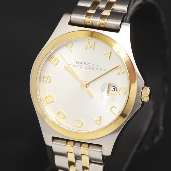 - 稼働 QZ 良品 マークバイマークジェイコブス MBM3325 シルバー文字盤 デイト レディース腕時計 2000000 NSK KRK
