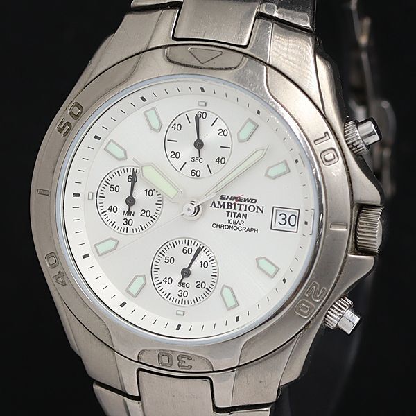 - 稼動 シュルード アンビション 787002 チタン QZ 白文字盤 デイト クロノグラフ メンズ腕時計 KTR 2000000 NSK