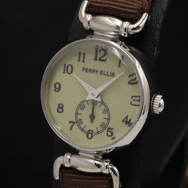 > 稼働 良品 ペリーエリス V-374 スモセコ ラウンド QZ アイボリー文字盤 レディース腕時計 TKD 2000000 NSK
