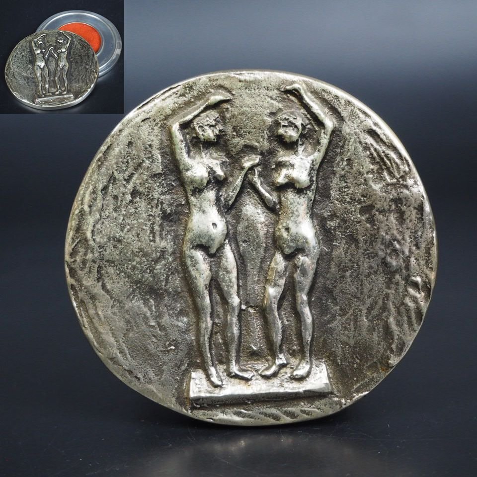 - 【金富士】白銅製朱肉池/印泥盒 検/茶托茶壺古錫玉川堂高岡佐渡銅器龍文堂亀文堂中国古玩骨