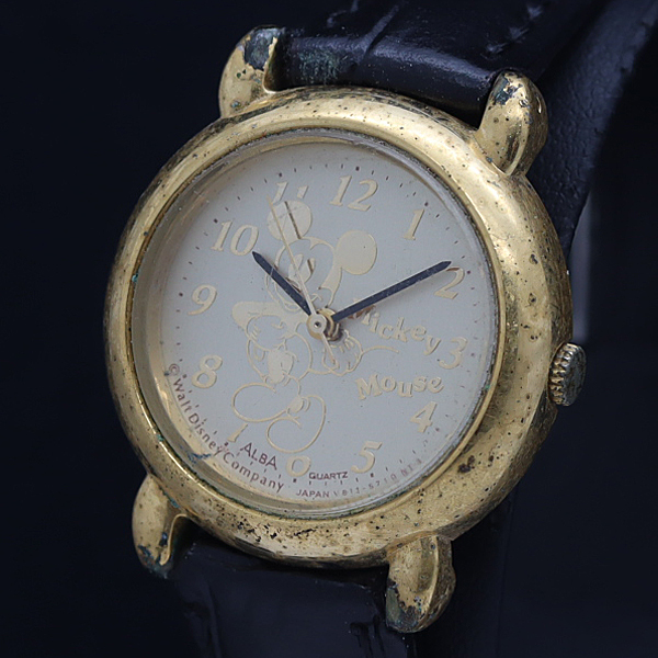- 稼動 セイコー QZ V811-0550 アルバ ミッキーマウス ラウンド ゴールド文字盤 レディース腕時計 2000000 NSK MTM