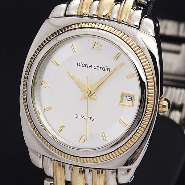 - 良品 ピエールカルダン QZ PC2166TS 白文字盤 デイト ラウンド メンズ腕時計 NKG INU