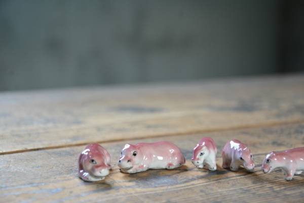 - NO.312 古いカバの親子5頭SET 陶器製 未使用品 検索用語→A50g昭和レトロアンティークヴィンテージ古道具河馬置物オブジェ