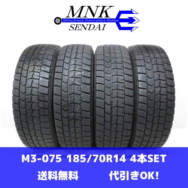 - M3-075(送料無料/代引きOK)ランクS 中古 美品 バリ溝 185/70R14 DUNLOP WINTERMAXX WM02 2022年 8~9分山 スタッドレス 4本SET
