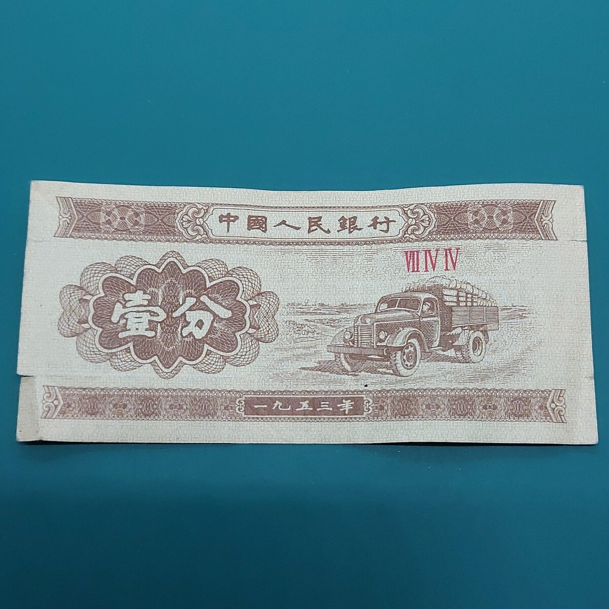 - 中国人民銀行 壹分札 1953年 荷物を積んだトラック 中国古札 【L306】