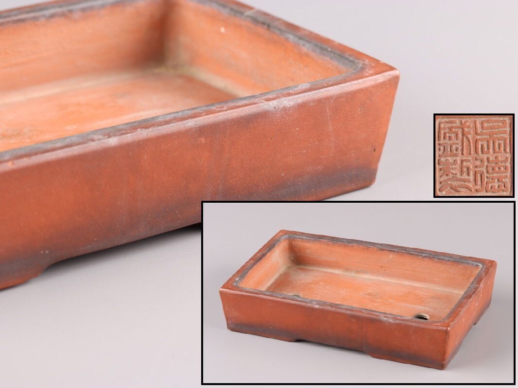 > 中国古玩 唐物 朱泥 紫泥 盆栽鉢 呉徳盛製 在印 時代物 極上品 初だし品 D4344