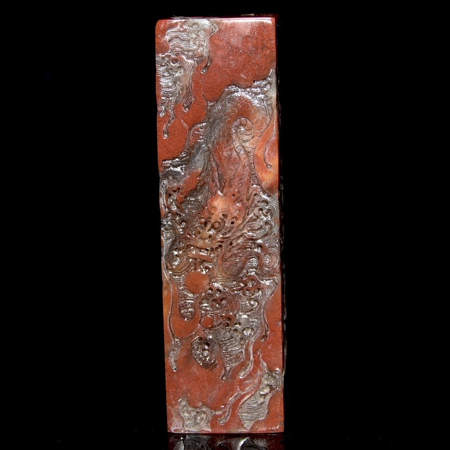 - 永し 清時代 篆刻家 古泥銘 壽山石彫 龍紋 手彫り 印章 印鑑 印璽 極細工 置物擺件 古美術品 時代物 古董品 収集 旧家蔵出 中国唐物 418g