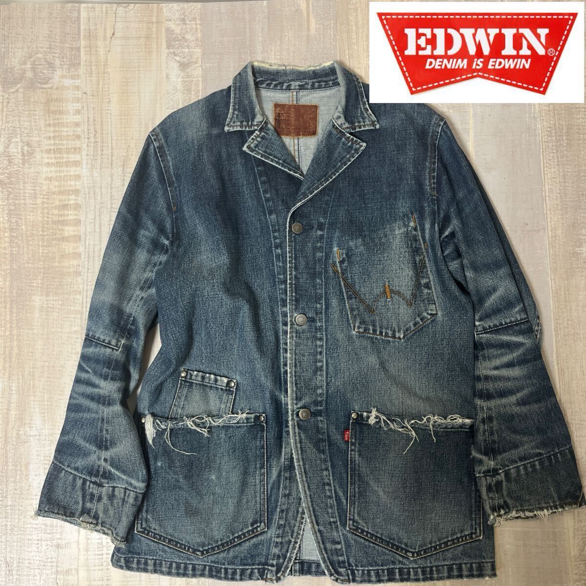 - 【雰囲気抜群】EDWIN デニム カバーオール ジャケット エドウィン メンズ ヴィンテージ ユーズド