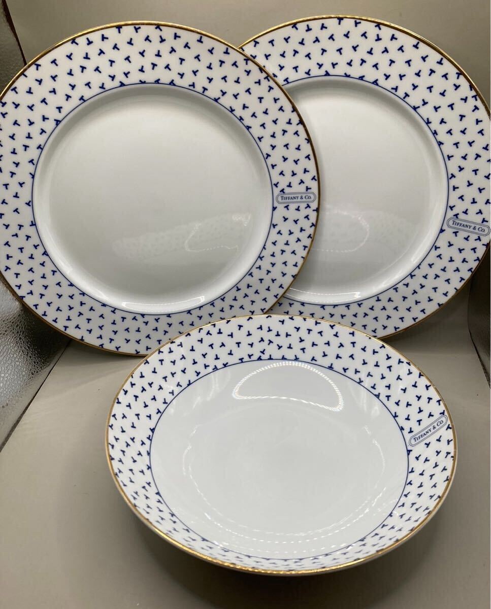 > △ TIFFANY&Co. 洋食器 プレート2枚 サラダボウル ダンシングT 大皿 深皿 金彩 ティファニー △293137