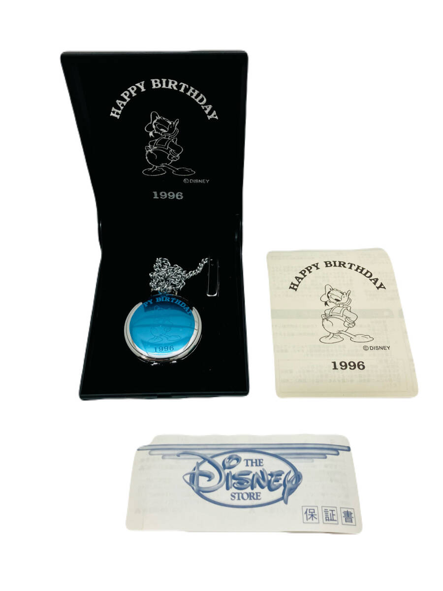 > 【稼働品】*箱付き/電池交換済*THE Disney STORE ・ ディズニーストア / ドナルドダック HAPPY BIRTHDAY 1996年 386/500本限定 懐中時計