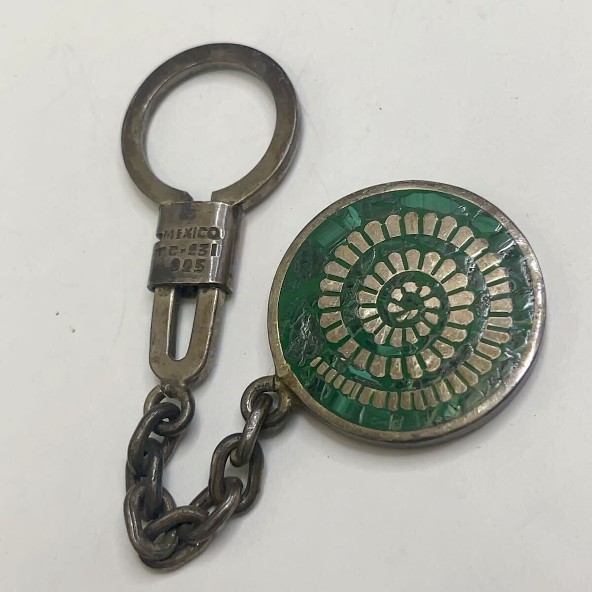 - ヴィンテージ メキシコ製 シルバーキーホルダー マカライト/ラピスラズリ付き 925刻印 総重量約28.3g