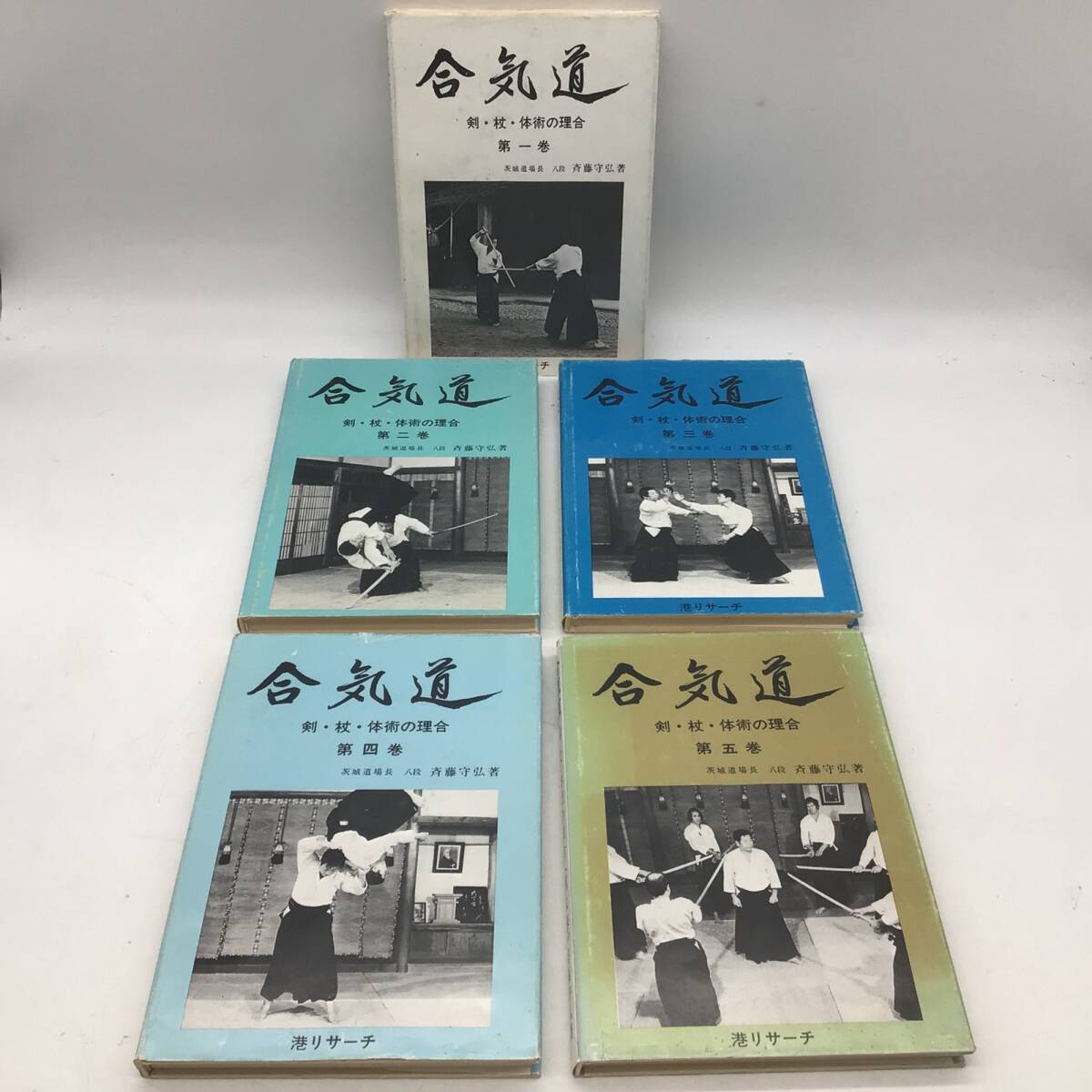 - 9053 【全巻セット】斉藤守弘「合気道 剣・杖・体術の理合」 第一巻~第五巻 港リサーチ発行 Aikido by Morihiro Saito