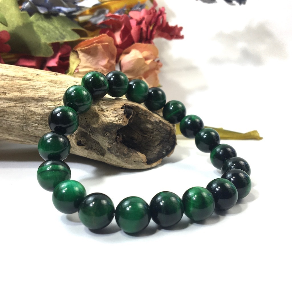 > グリーンタイガーアイ パワーストーン ブレスレット 10mm シンプル 開運 浄化 数珠ブレス メンズ・レディース 男性 ☆