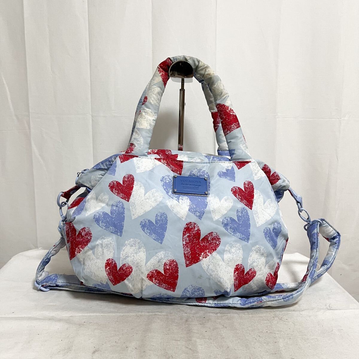 - 和837★ VOVAROVA ボバロバ ハンドバッグ ショルダーバッグ ハート 総柄 ブルー レディース