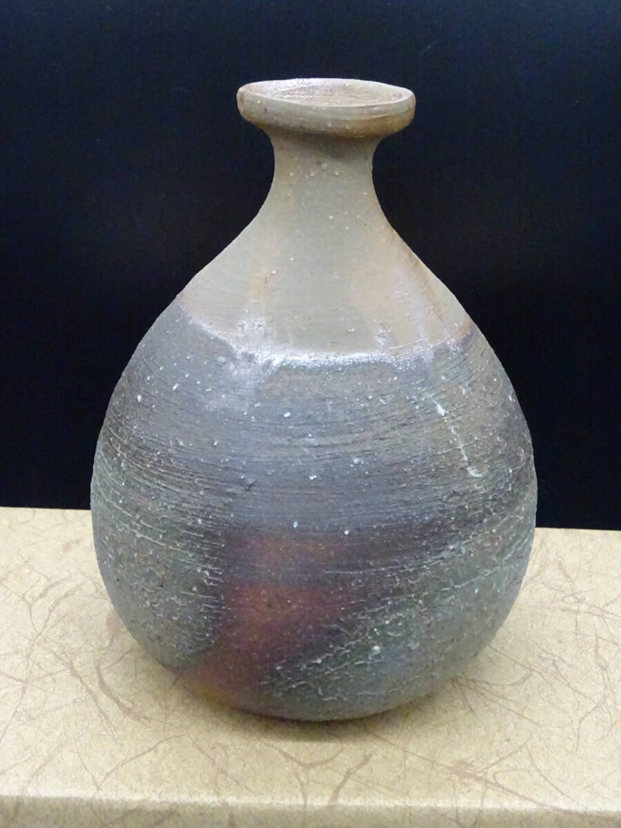 - 備前焼 人気実力作家 澁田寿昭(師:伝統工芸士鷹取関山、受賞歴多数)★備前窯変徳利 紙箱、陶歴付 酒器茶碗壺 茶道具