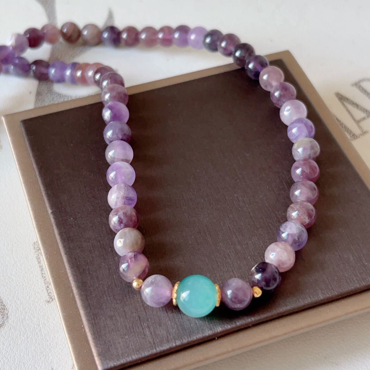- ◇紫水晶+アマゾライト◇アメジスト◇パワーストーン◇ブレスレットネックレス両用◇天然石◇巾着袋付き◇プレゼントにも040B9145