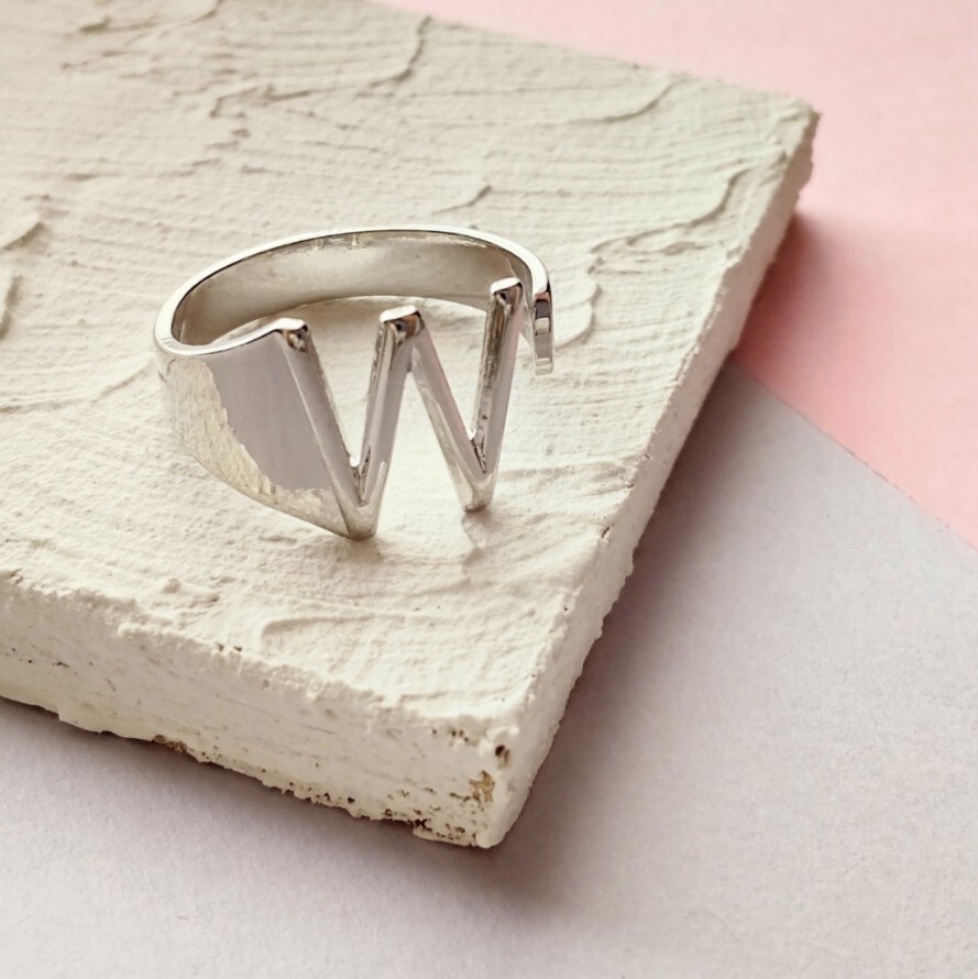 - イニシャル オープンリング W シルバー 指輪 ペア 韓国 推し活 #74