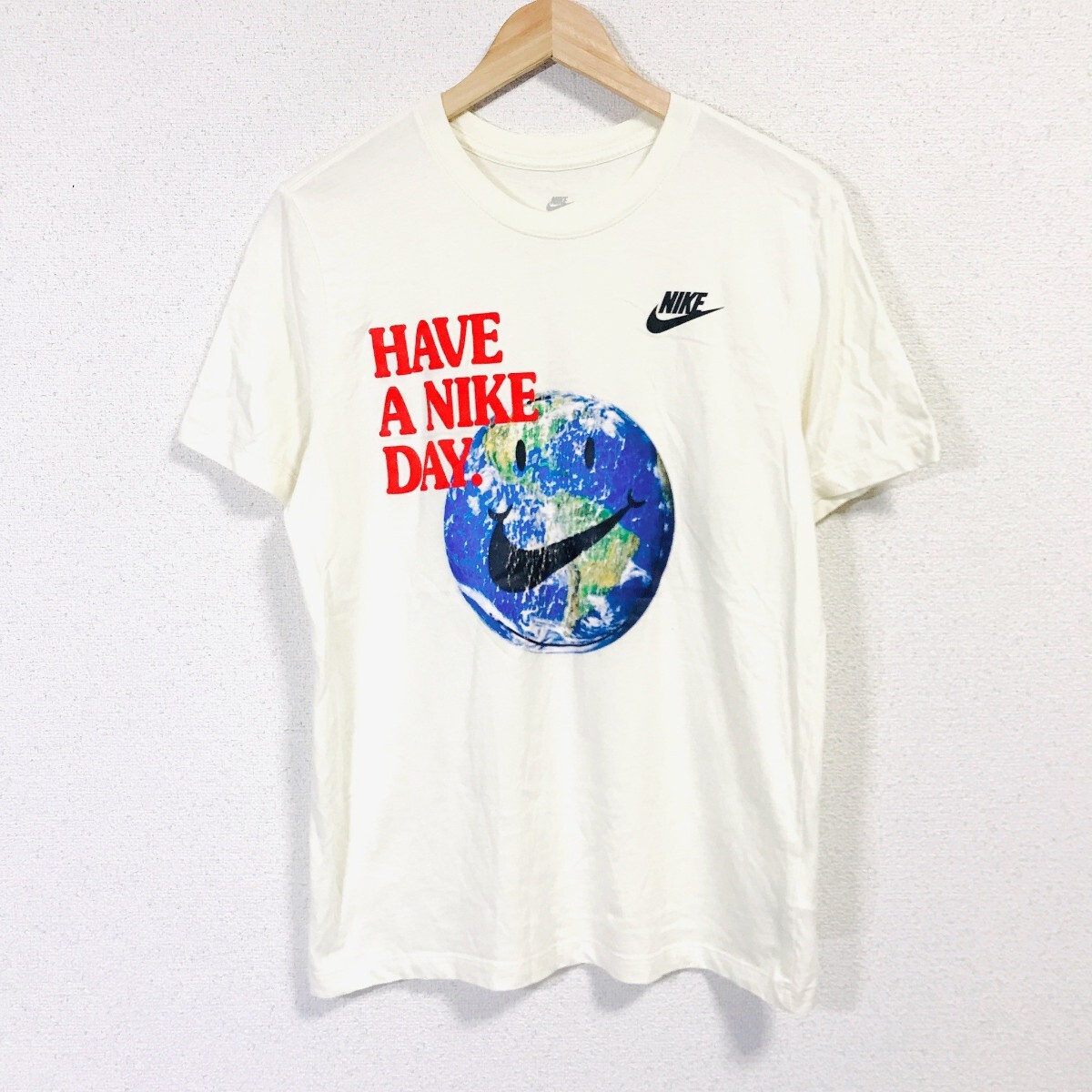 - Ye2003dL THE NIKE TEE ナイキ サイズL 半袖Tシャツ プリント スマイル 地球 ホワイト系クリーム メンズ スポーティー カジュアル