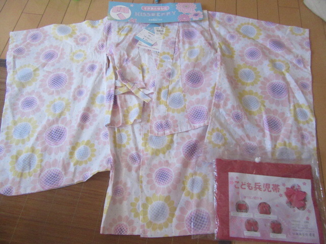 > 新品すかあとゆかたスカートセパレート浴衣120サイズ綿100%こども兵児帯日本製セット6380円を激安即決550円