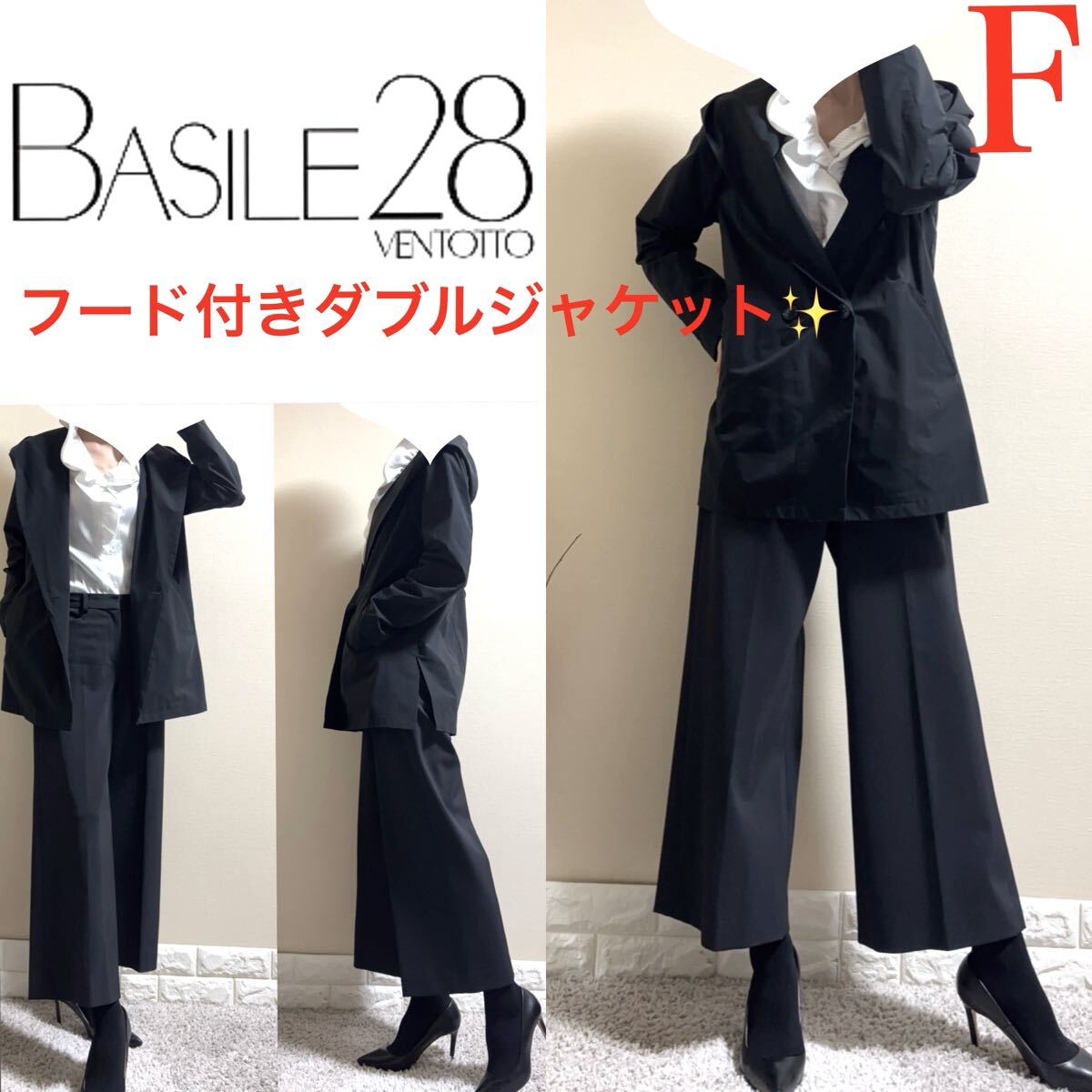 - BASILE28 バジーレ28 バジーレヴェントット コムサデモード リュクス フード付 ダブルジャケット ライトアウター 春秋コート 黒 F