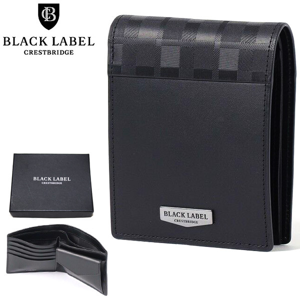 - 送料無料!定価2.8万 新品 クレストブリッジ ブラックレーベル CBチェック切換 レザー 二つ折り財布 小銭入有りBLACK LABEL CRESTBRIDGE黒