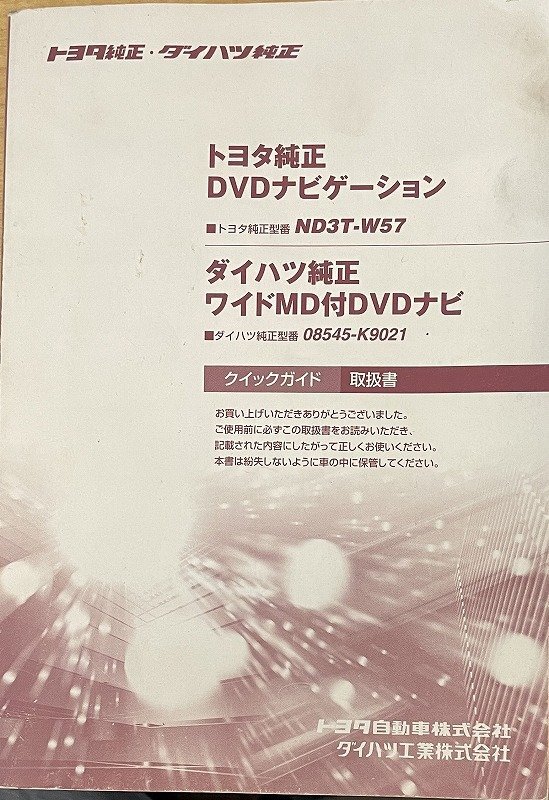 - ★トヨタ純正・ダイハツ純正★DVDナビゲーションND3T-W57・ワイドMD付DVDナビ08545-K9021 クイックガイド 取扱書21 #09Z3039a96