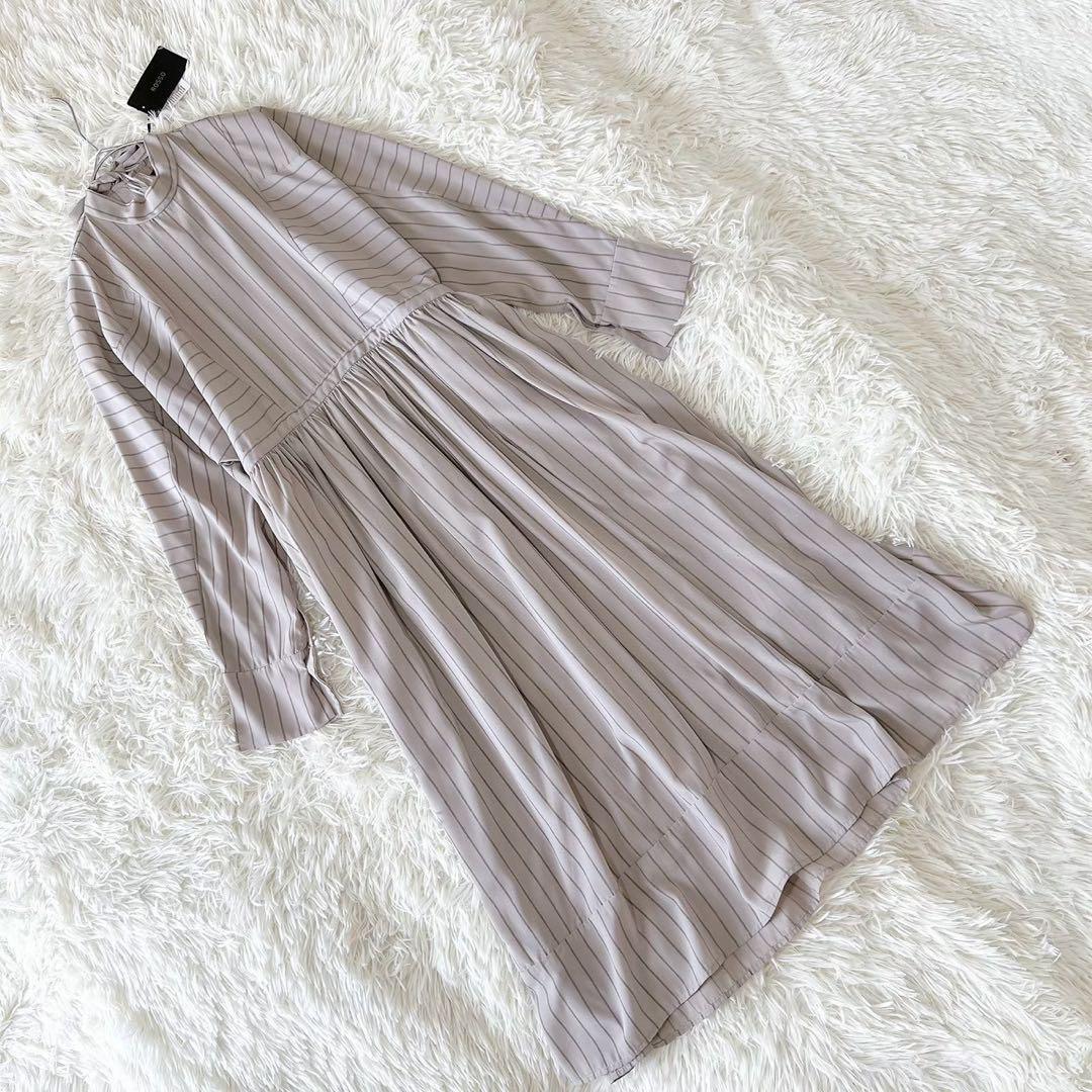 - 《ロッソ》 (F) ギャザーフレアロングワンピース ストライプ きれいめ 上品