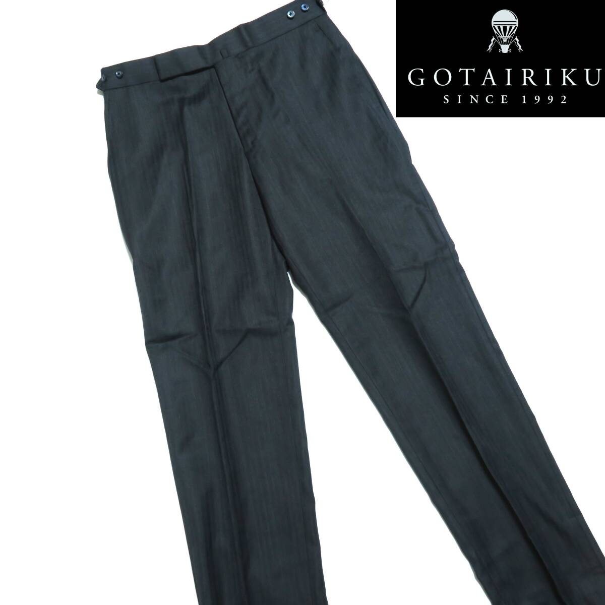> R026■秋冬 五大陸 GOTAIRIKU ゴタイリク グレー色系シャドーストライプ ベルトレス 高級ウールスラックス W78cm 少々訳有 オンワード樫山