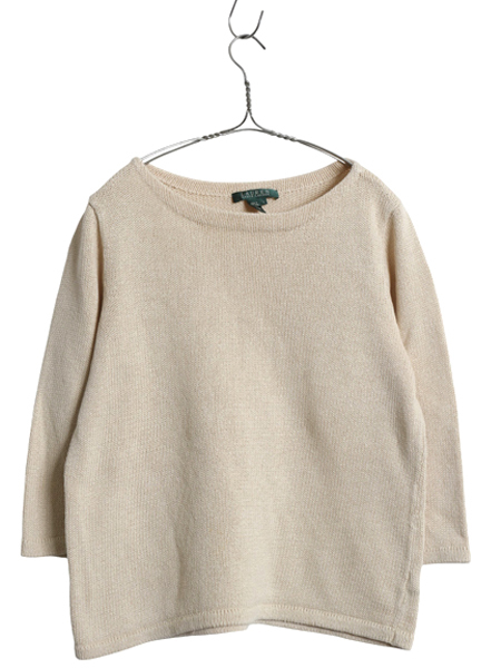 > 90s ローレン ラルフローレン ボートネック コットン ニット セーター レディース L / オールド 7分袖 カットソー 無地 シンプル トップス