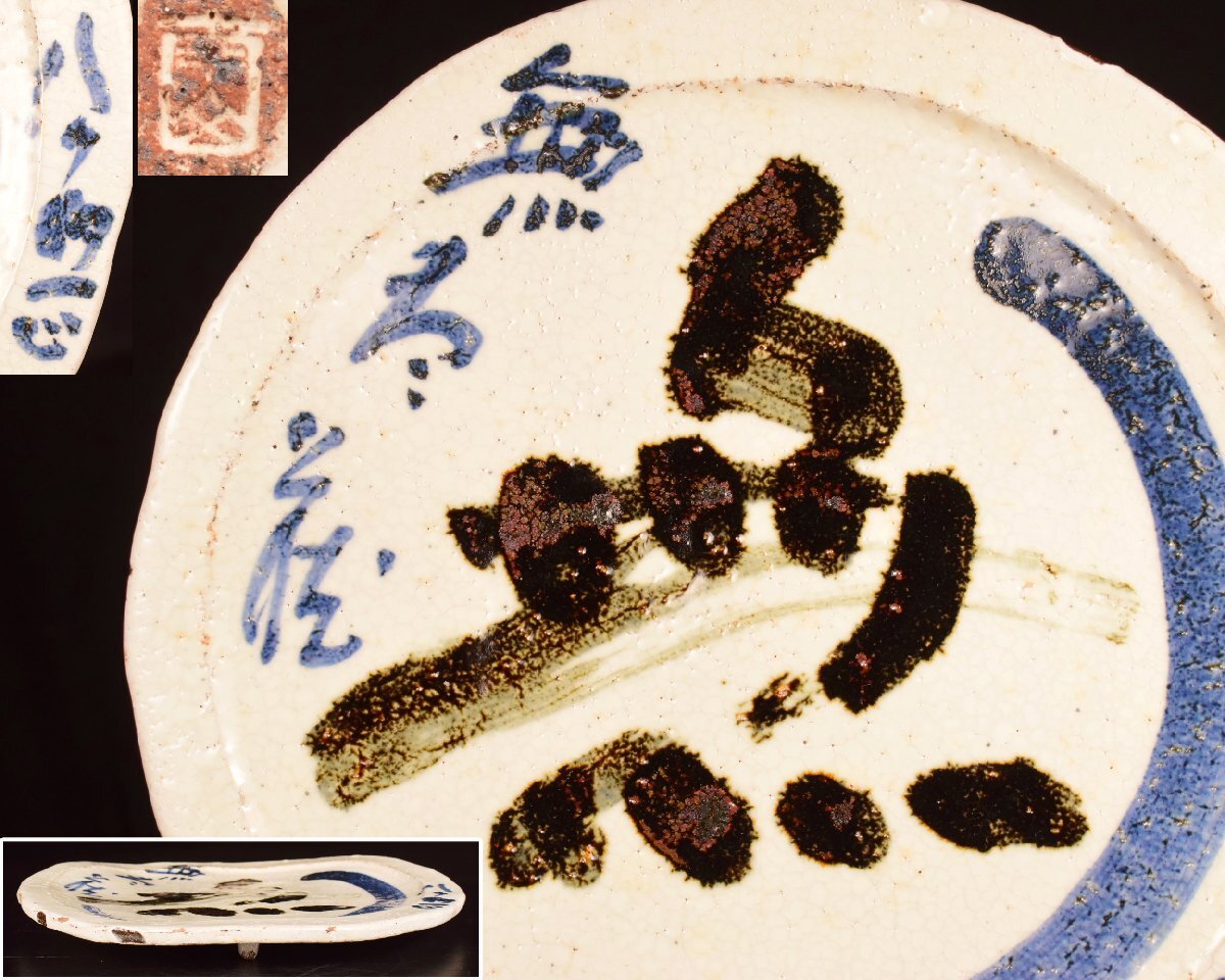 Z532 【泉美】南山窯 清水公照「無」大皿 飾皿 丸皿