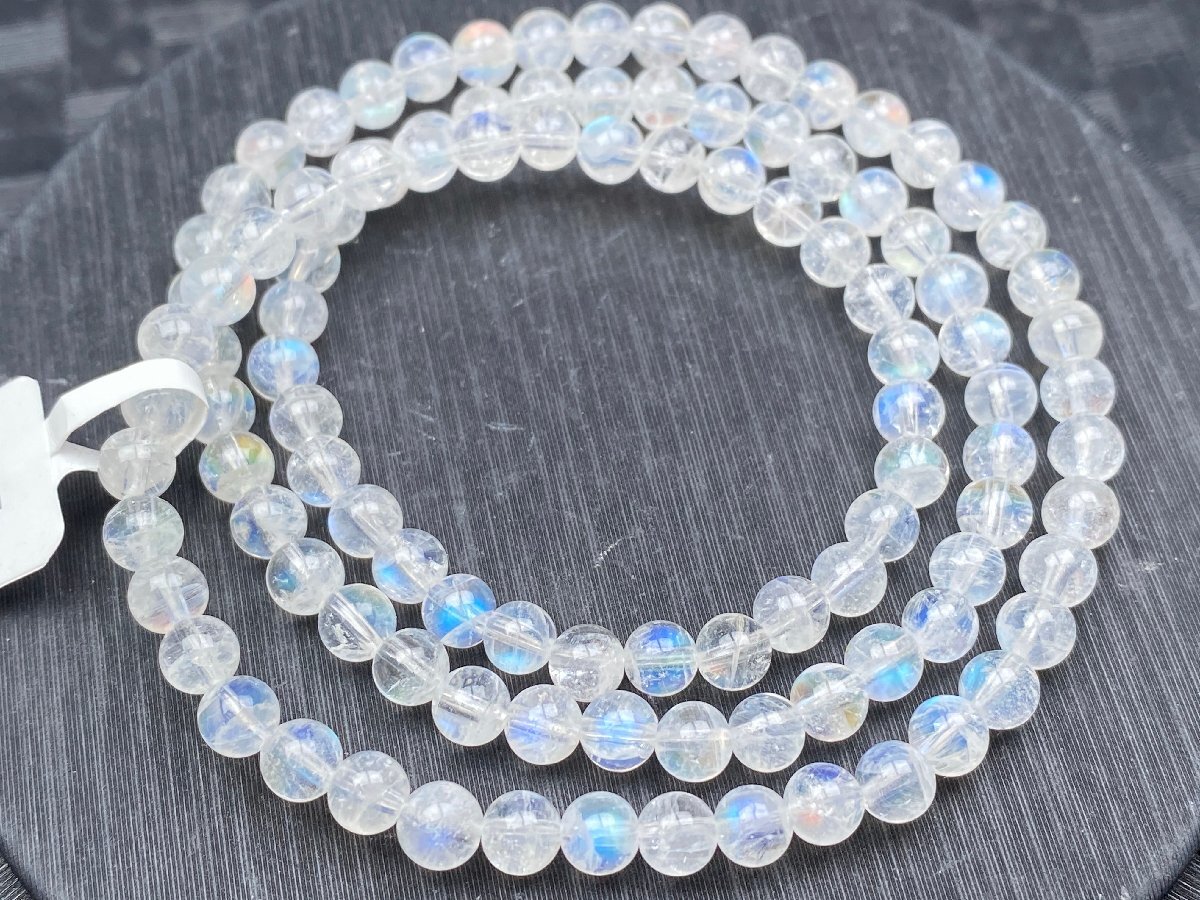- 即決 0615k435 マダガスカル産★【45Aロイヤルレインボームーンストーン】★ 3重巻き 5.2mm 52cm(新品)
